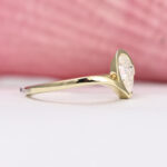 When set in a half bezel, the stone’s asymmetry becomes even more pronounced and intriguing, drawing the eye in and creating a strong statement of personal style. It’s a choice that speaks to those who value both romance and originality in their engagement ring.