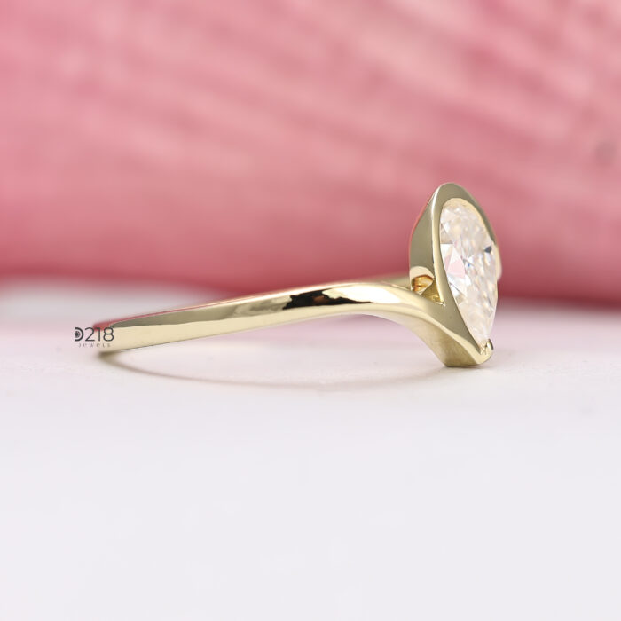 Pear Cut Diamond Half Bezel Engagement Ring – Graceful Curves, Modern Strength