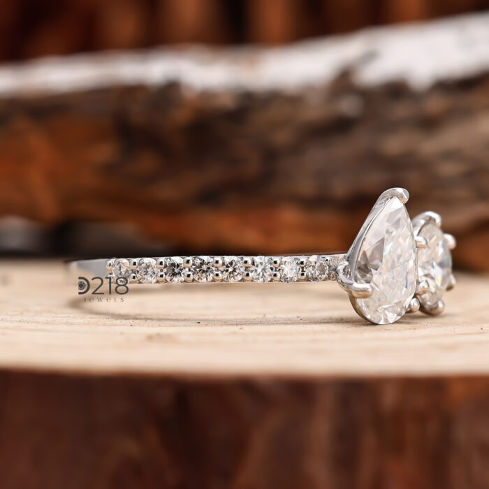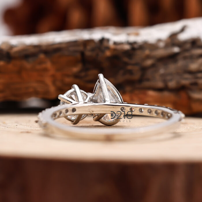 3.6 TW Radiant and Pear Cut Moissanite Diamond Toi Et Moi Engagement Ring
